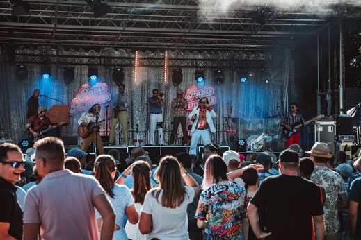 Von den ersten Tönen an herrschte auf dem Hermannsplatz eine unglaubliche Energie. Die Hits der 70er wurden neu interpretiert, und die Band schaffte es mühelos, Jung und Alt auf die Tanzfläche zu